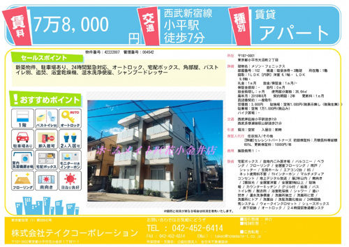 小平市の賃貸情報【ホームメイトFC花小金井店】 > ホームメイトFC花小金井店のスタッフブログ記事一覧 > 小平駅 新築アパート